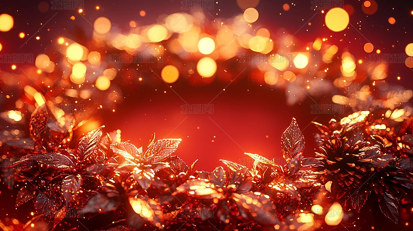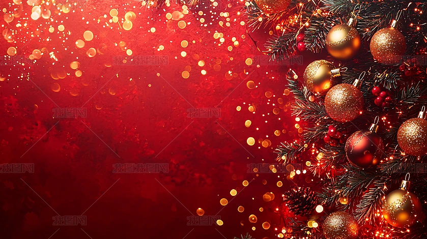紅色背景金色花朵圣誕裝飾