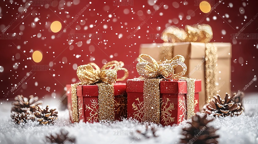 紅金色圣誕禮物堆疊