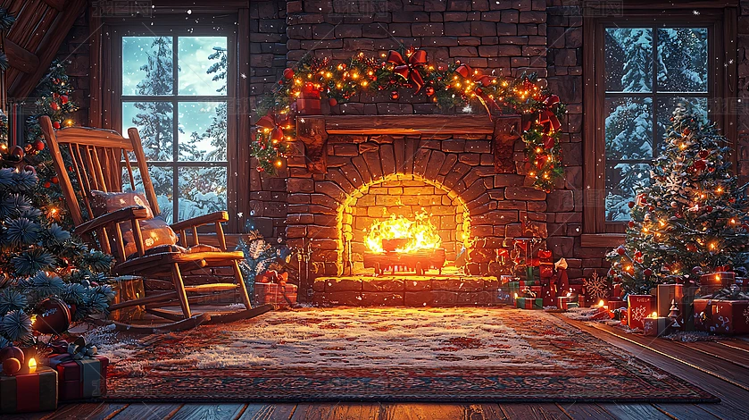 溫馨圣誕壁爐房間