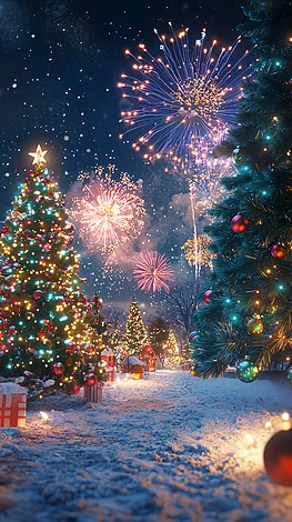 圣誕節(jié)煙火樹林雪景