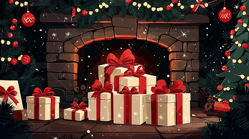 圣誕節(jié)壁爐堆滿禮物