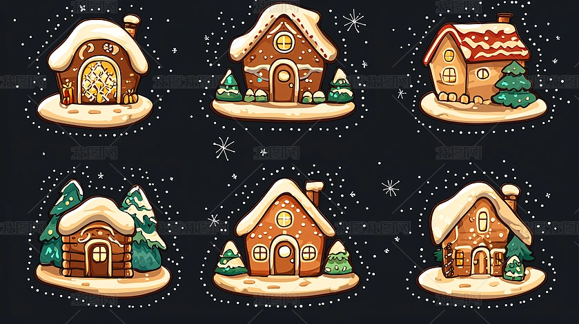 手繪姜餅屋圣誕節(jié)素材