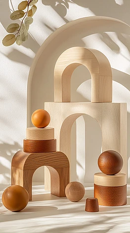 簡(jiǎn)約幾何木質(zhì)擺件展示背景