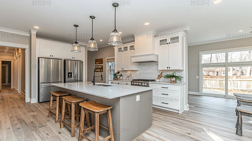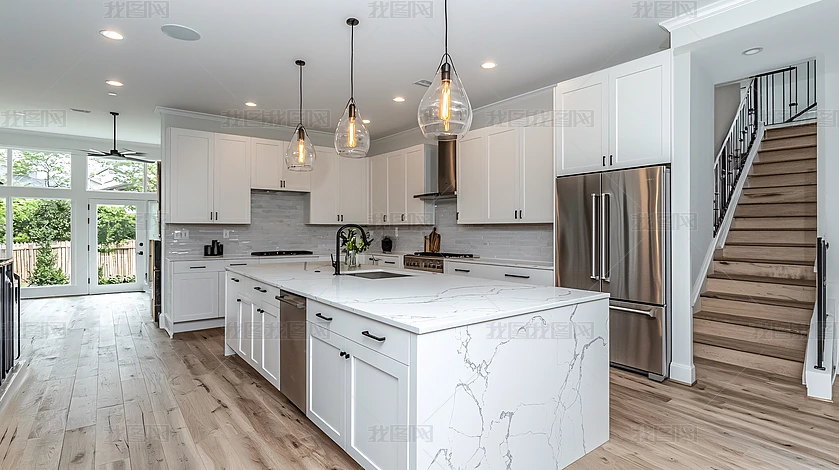 現代廚房白色櫥柜和島臺