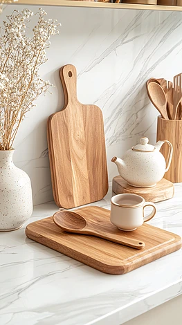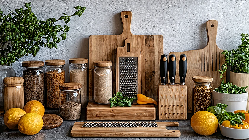 廚房臺面上的木質餐具