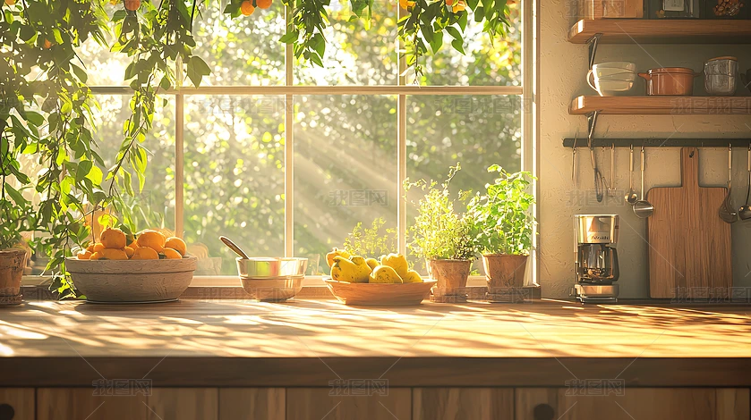 溫馨陽光廚房臺面靜物