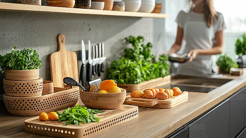 廚房臺面擺放食材廚具