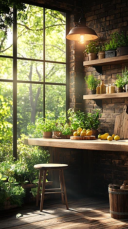 綠植環(huán)繞的溫馨廚房