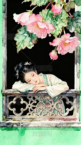 趴著陽(yáng)臺(tái)的美女畫(huà)插畫(huà)