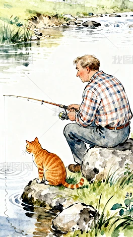 釣魚(yú)的老人和小貓