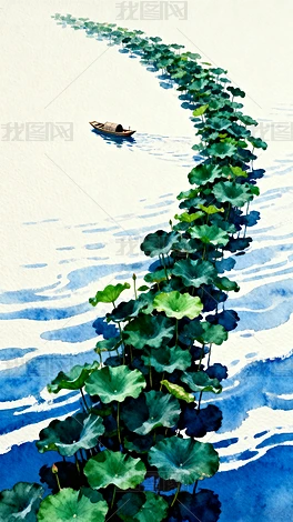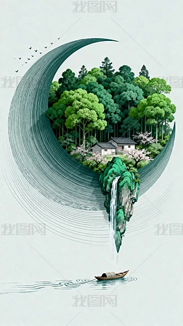古典綠色小船治愈系插畫(huà)