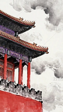 古典插畫(huà)古樓屋檐