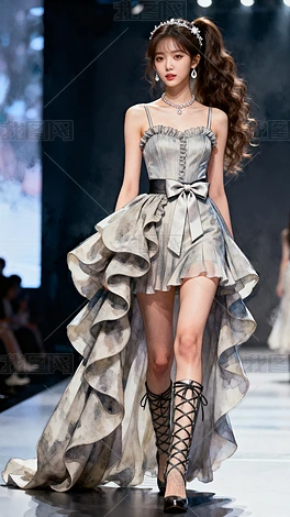 穿大擺裙走秀的美女
