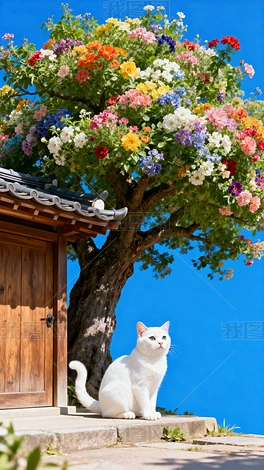 大樹(shù)繁花小貓